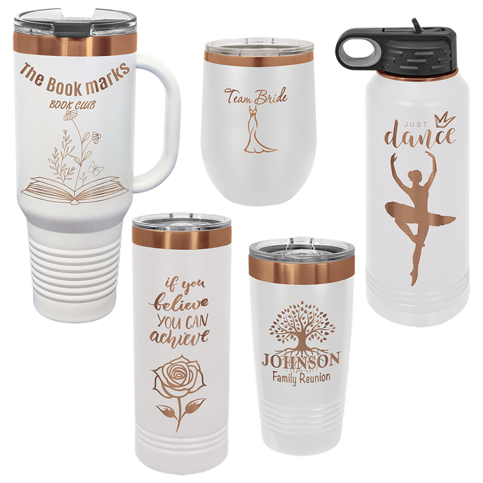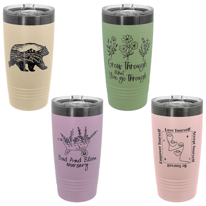 Polar Came Tumbler with lids and Vacuum insulated for maximum heat & cold retention. Prices include one side of engraving. Great gifts for any occasion.